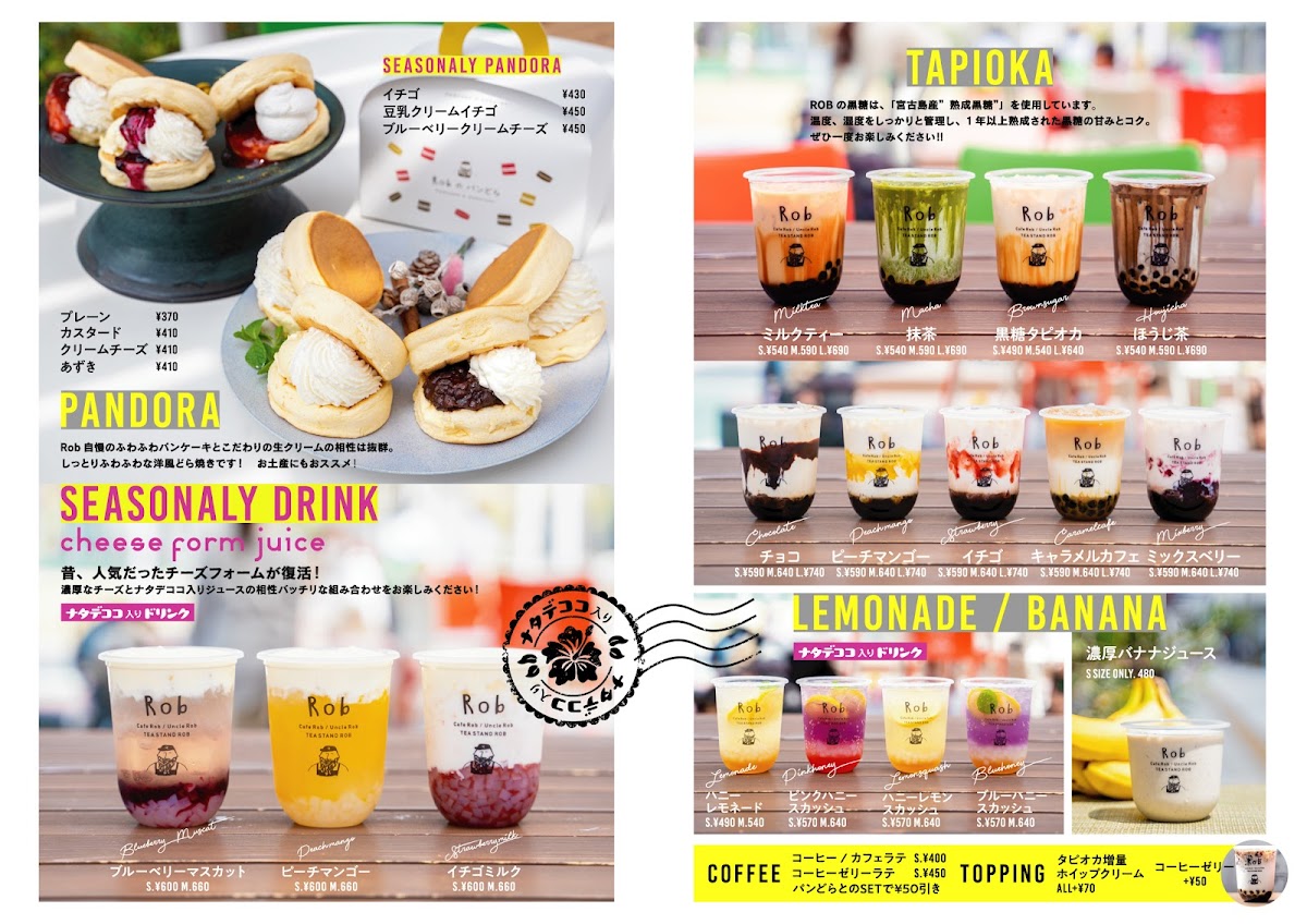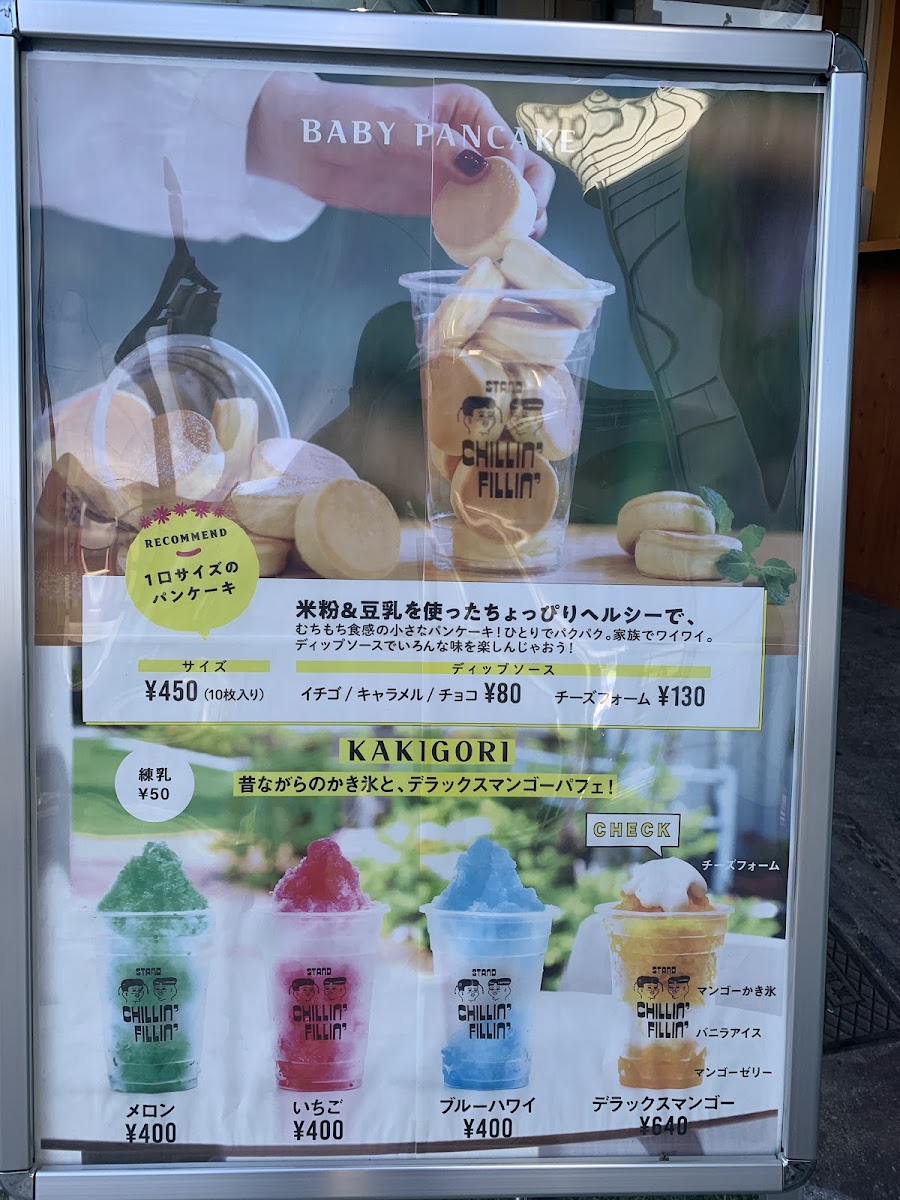 Introducing the menu of STAND CHILLIN' FILLIN', a charming café located in Okazaki, Aichi. This delightful spot is perfect for those seeking a mix of indulgent treats and refreshing drinks. Among the standout items are their famous 黒糖タピオカみるく (Brown Sugar Tapioca Milk) priced at just JP¥500, celebrated for its rich, soul-satisfying flavors.